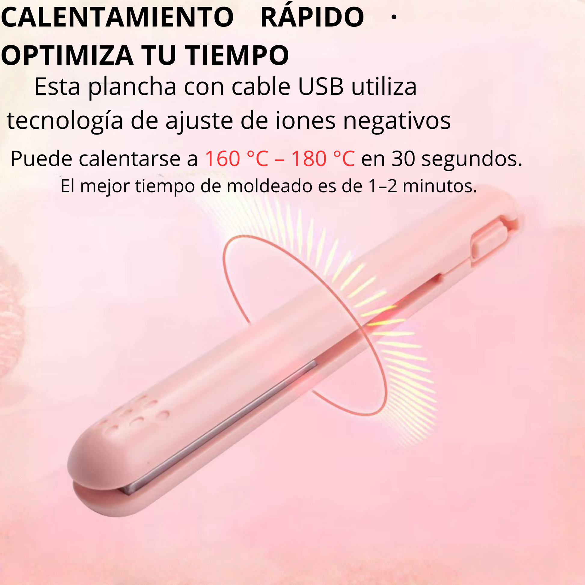 Desliza suavemente la plancha por el cabello seco, desde la raíz hasta las puntas. Su diseño compacto permite un control preciso y cómodo.