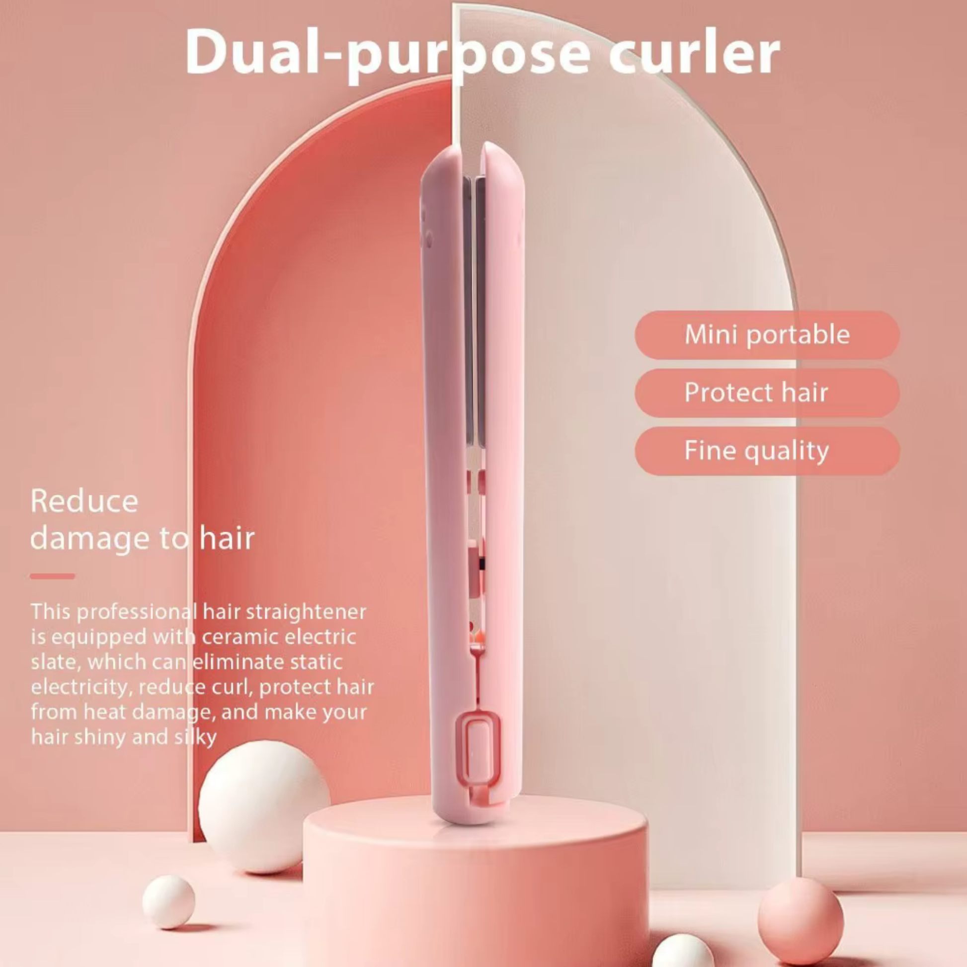 El Lumiraz™ Mini Cepillo Alisador 2 en 1 incorpora cerámica de turmalina para reducir el frizz, proteger el cabello y lograr un acabado brillante. Su sistema de calor uniforme permite alisar o rizar con facilidad, mientras que el diseño inalámbrico, recargable por USB y giro de 360° garantiza un uso seguro, práctico y eficiente para todo tipo de cabello.